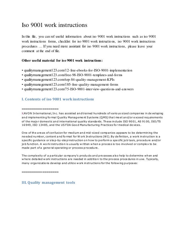 Here are some samples of images from the Iso Work Instruction Template that you can get. If you want to download it, just click the later image next save. You can with transfer it to word or pdf and after that print your downloaded results.