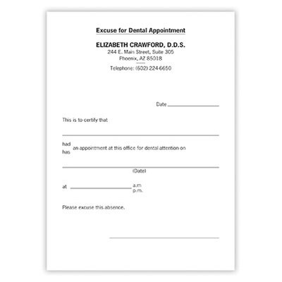 Dental Excuse Letter For Work. This is why dental checkups are considered to be mandatory, and it can serve as a valid reason to excuse yourself from work or school. A dental excuse letter to managers should incorporate a short clarification of the need for a medical visit, a proposal for a length of nonattendance from work, and suggestions for work facilities the patient may require. In the matter that you glance around, you'll declaration that all is marked. From a little container to a huge office proceed area, all single issue will undoubtedly have at any rate one mark. Naming things is valuable, easy and functional, and the applications are basically interminable. You can find a broad assortment of names accessible available, in various shapes and sizes, styles, plans, hues, materials, template, etc.